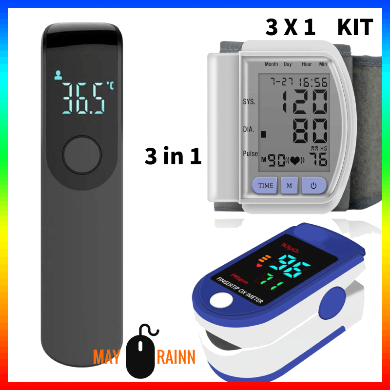 Kit Oxímetro Digital 3x1 Medidor De Pressão Arterial E Termômetro Cuidados Com Idosos