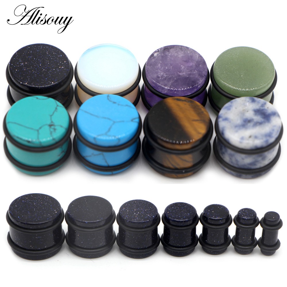 Alisouy 2PCS Tampões De Orelha De Pedra 5-16mm Mulheres Homens Brincos Túnel De Carne Expansor Jóias De Perfuração Do Corpo Da Maca