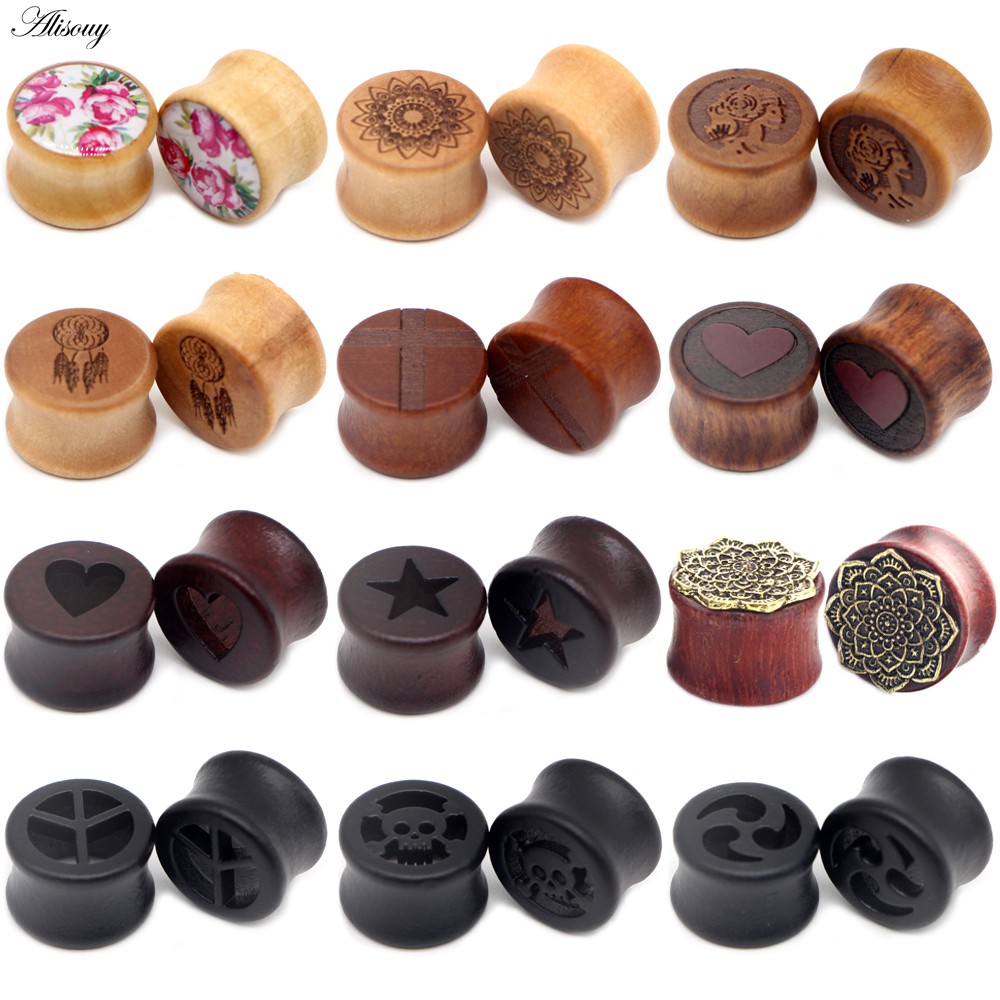 Alisouy 2PCS Novela Orelha De Madeira Tampões 10-20mm Brincos Mulher Homens Túnel De Carne Punk Expansores Jóias Corporais Piercing