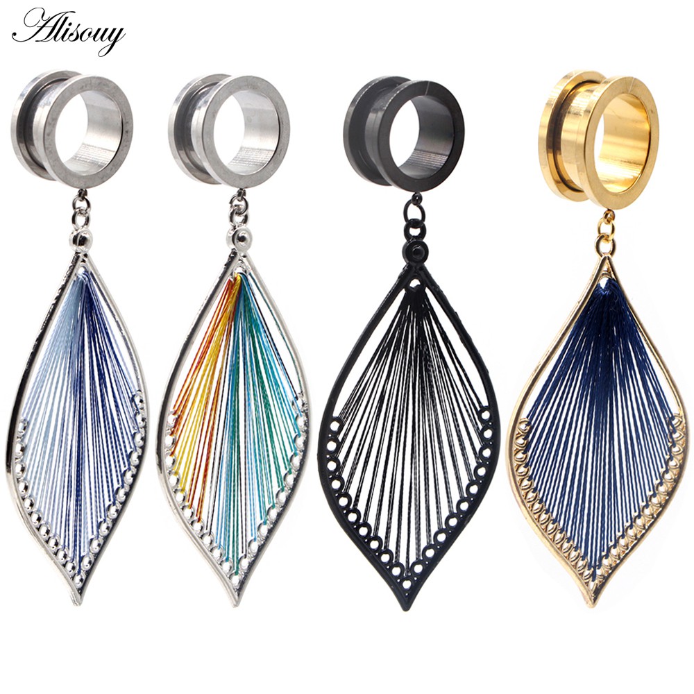 Alisouy 2PCS Tampões Auriculares Túnel De Tecem Folhas Maca De Orelha Emaranhado Aço Inoxidável Jóias De Perfuração De Parafuso Expansor