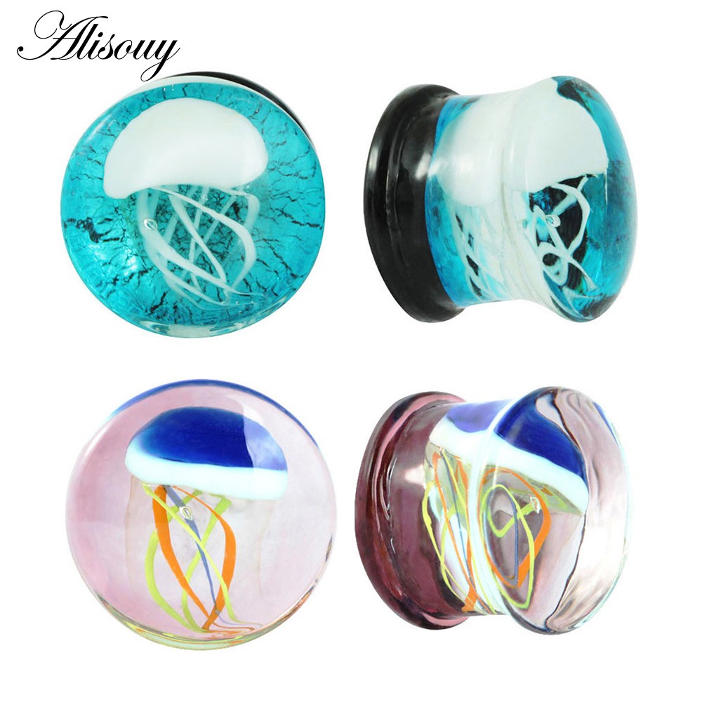 Alisouy 2PCS Romântico 8-16mm Colorido De Água-Viva Orelha De Vidro Expansores Túnel De Medição Jóias De Perfuração Do Corpo