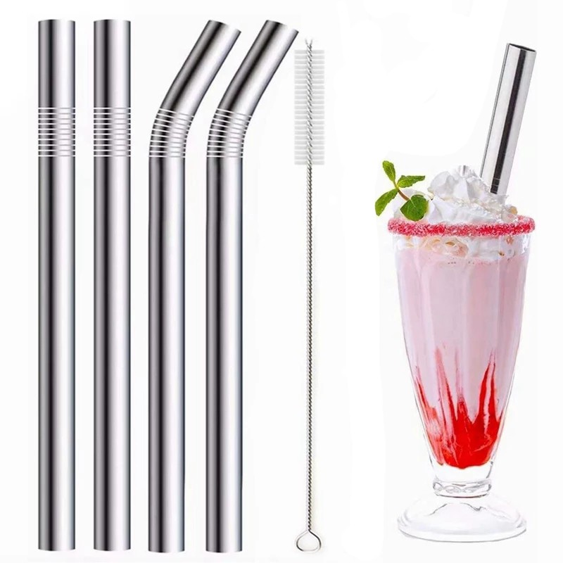 kit 5 pçs com 4 pçs Canudo de aço inox para milkshake reutilizável sustentável + 1 Escova de limpeza