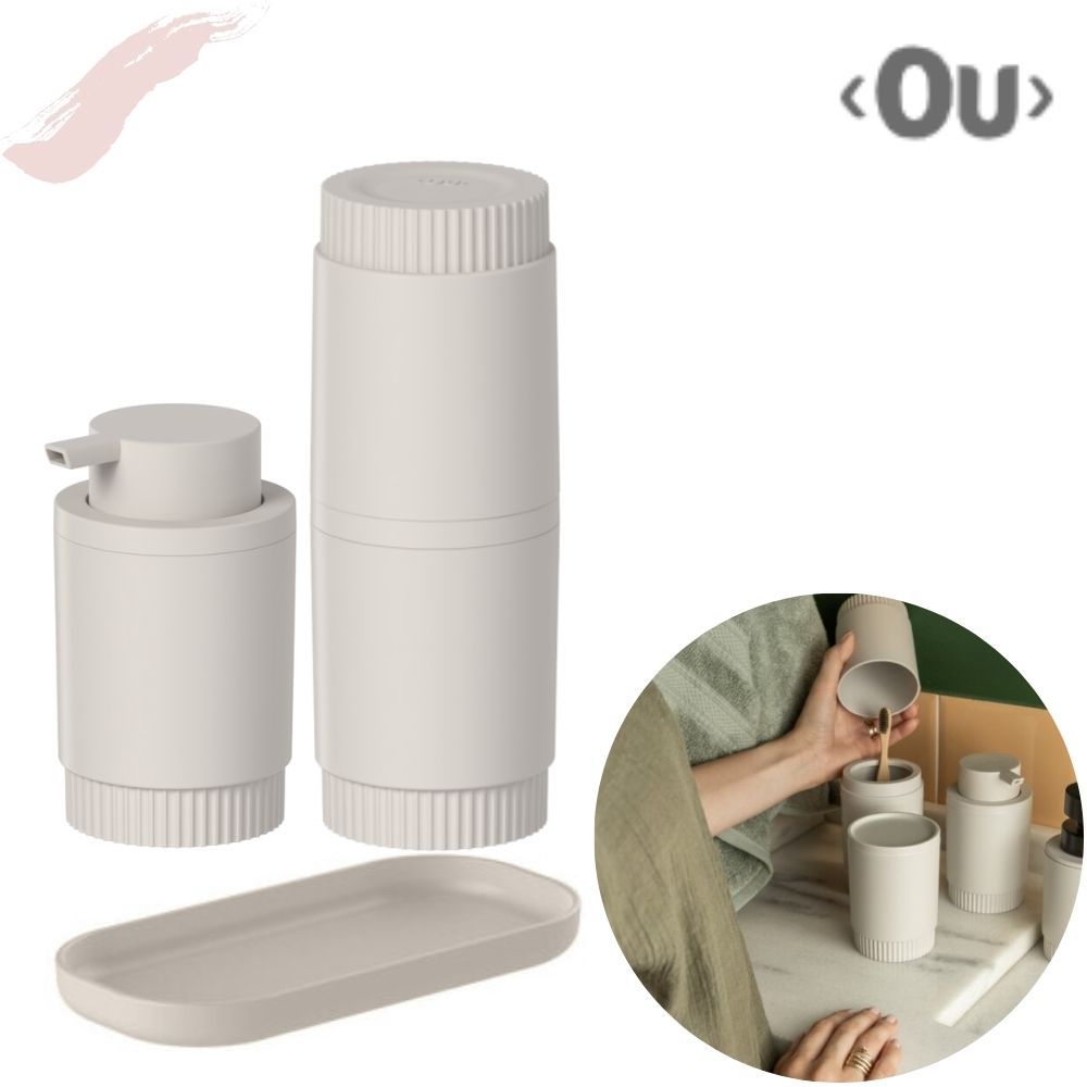 Conjunto de Banheiro 3 peças - Porta escovas Porta Sabonete Líquido e Bandeja Linha Dórica
