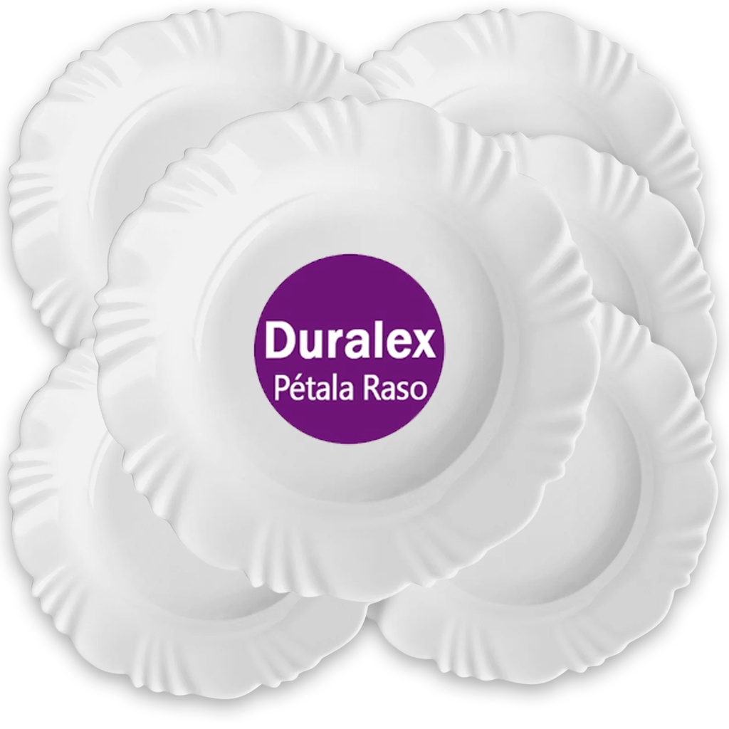 Kit JOGO de 6 Pratos RASOS - FUNDOS Formato de Pétala - Vidro TEMPERADO com PORCELANA - DURALEX opaline