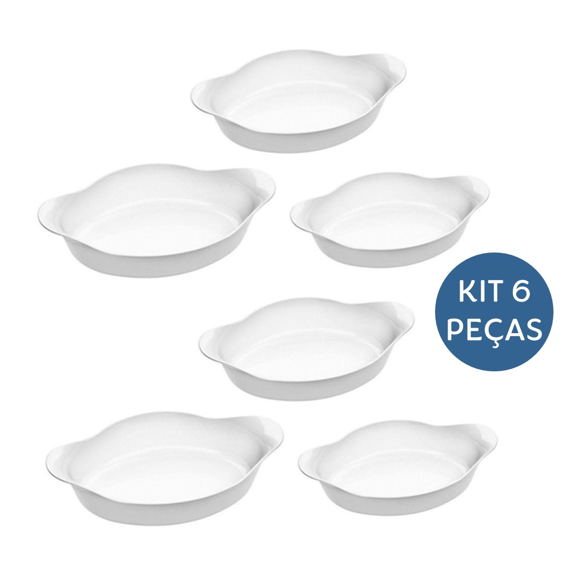 Conjunto de Assadeiras Ovais 6 Peças Marinex Opaline Vidro Temperado Kit Jogo
