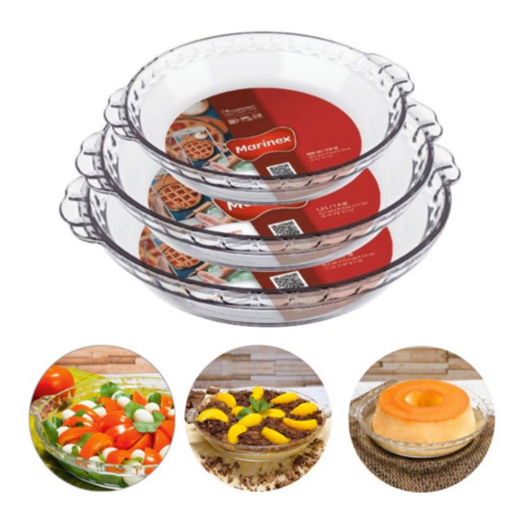 Jogo Travessas Assadeira Filetada Oval Forma Vidro Temperado Marinex Transparente Lasanha Sobremesa Kit Pequena Média Grande P M G 0,6L 1,3L 1,6L Forno