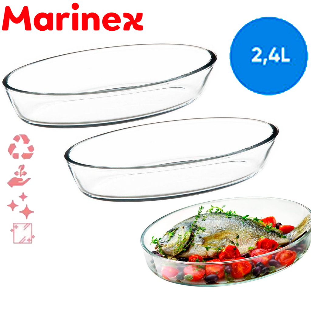 Conjunto Jogo Kit de 2 Travessa 1,6litros Assadeira retângula Lasanheira Refratária de Vidro Marinex