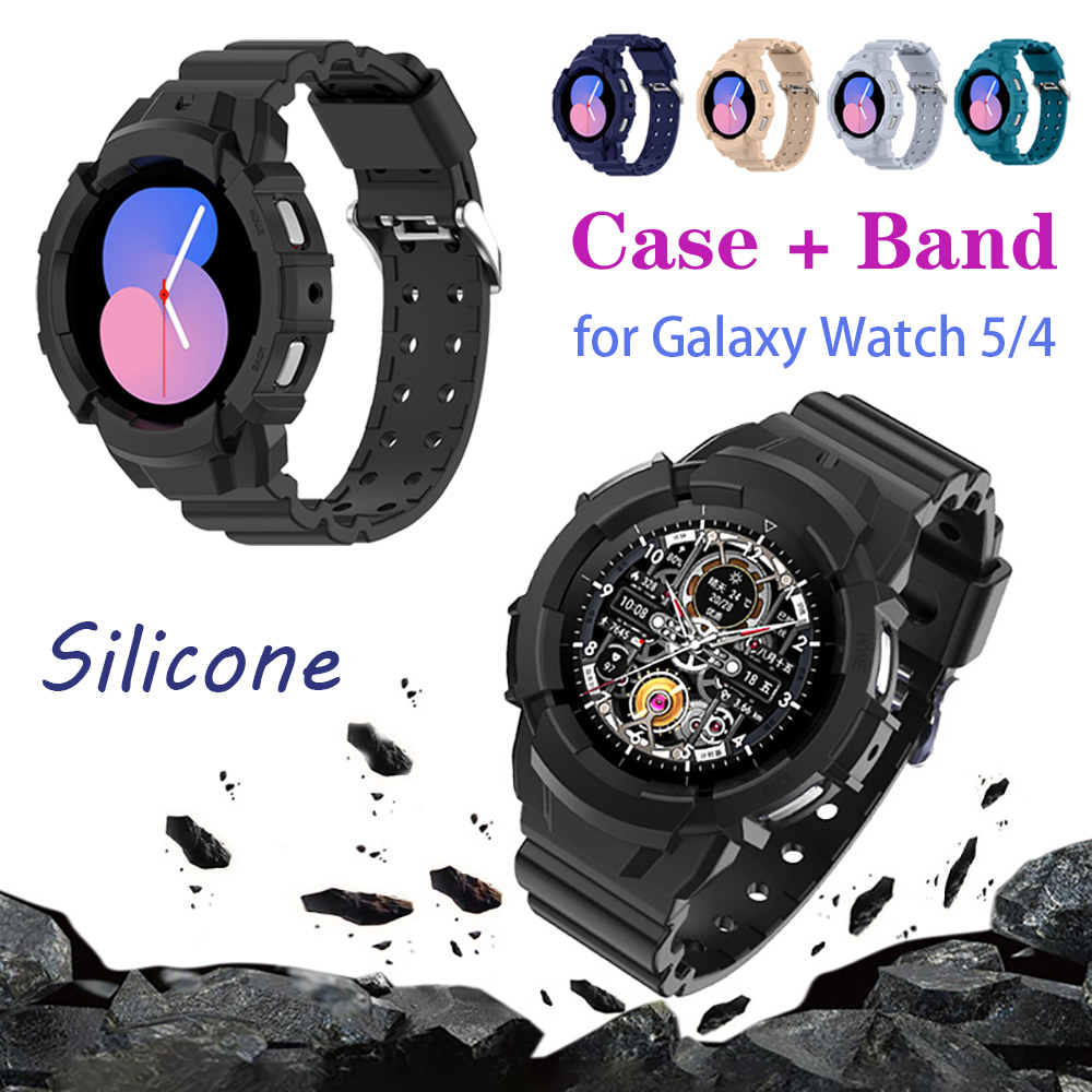 Caixa + Banda Para Relógio Samsung Galaxy 4/5 44mm 40mm silicone Sem Lacunas Pulseira correa Capa Protetora + 5 Bracelete 20mm 22mm