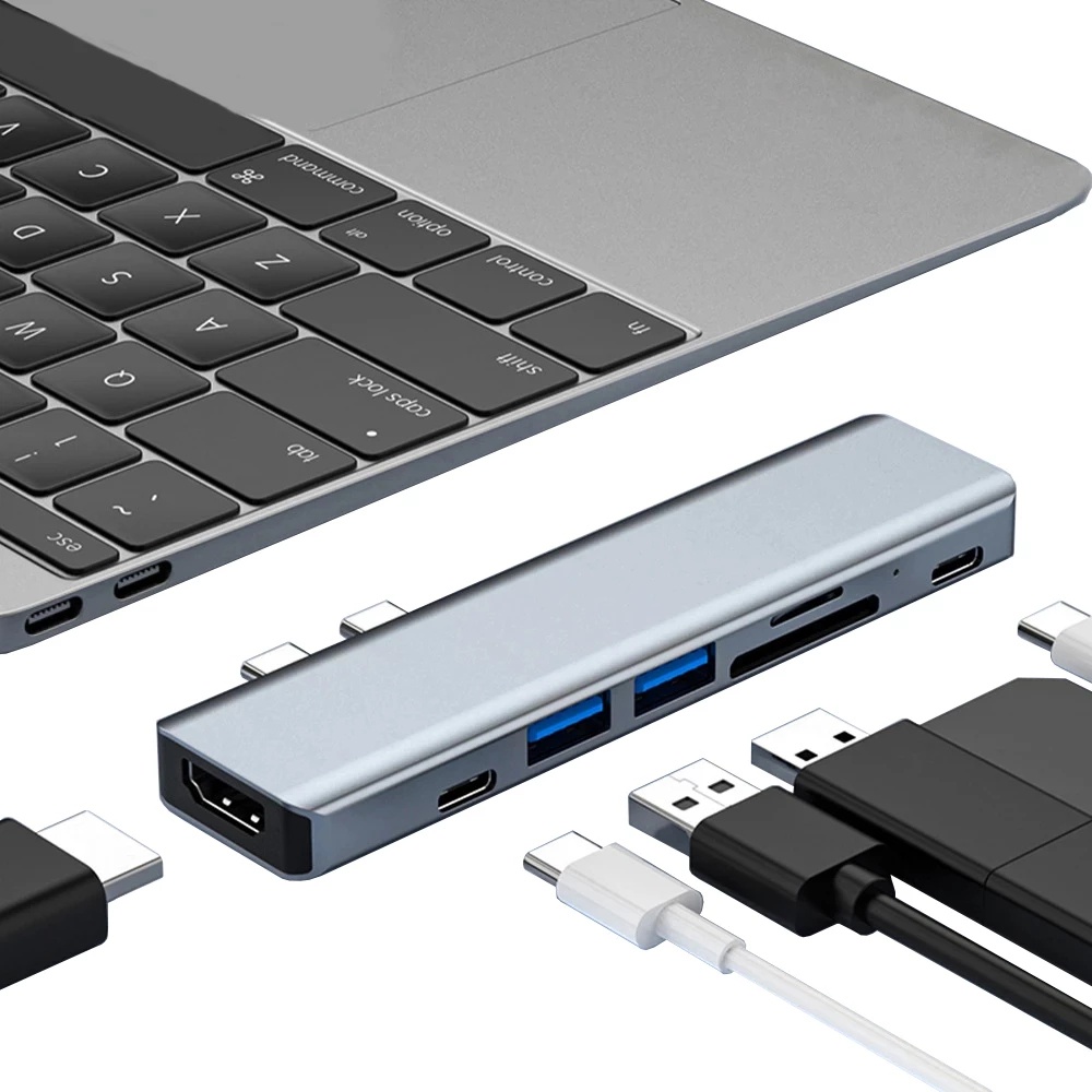 Duplo USB c HUB Com Leitor De Cartões Micro SD Tipo Para HDMI Adaptador 3.0 87W PD Carregamento Multi Portas Estação De Ancoragem