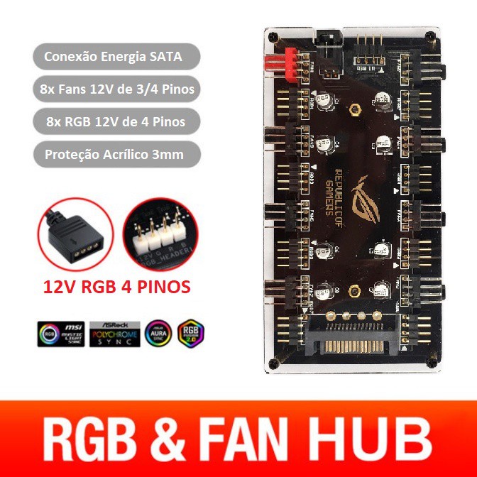 Hub RGB 12V 4 Pinos Multi Fans 3 e 4 Pinos até 8 Fans