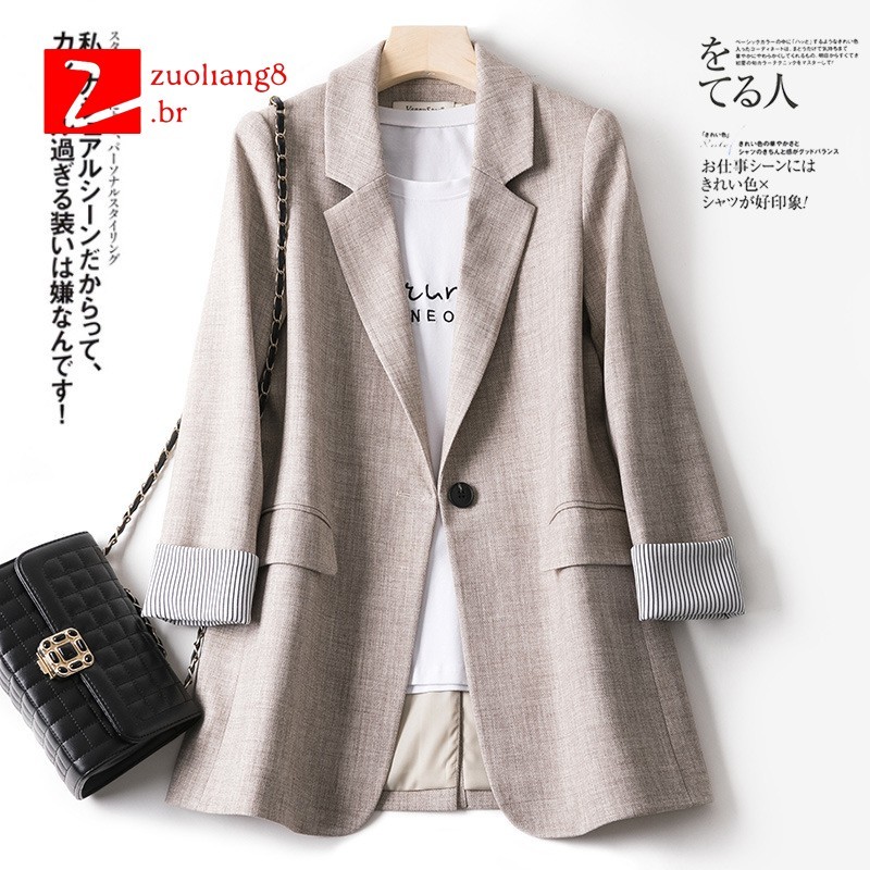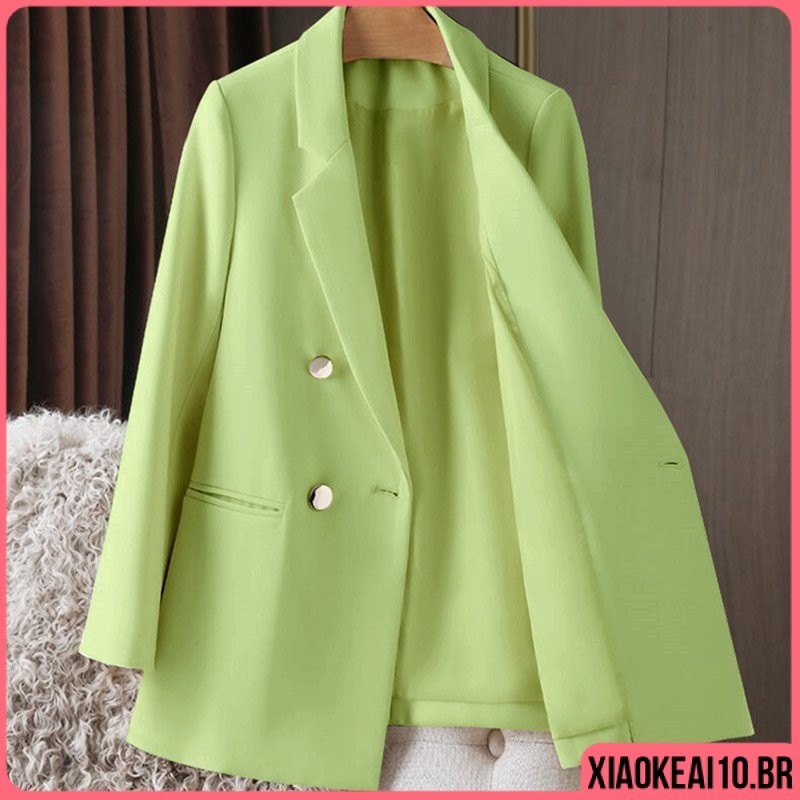 Blazer feminino alfaiataria outono primavera botão duplo cor lisa para casual/social P-5XG