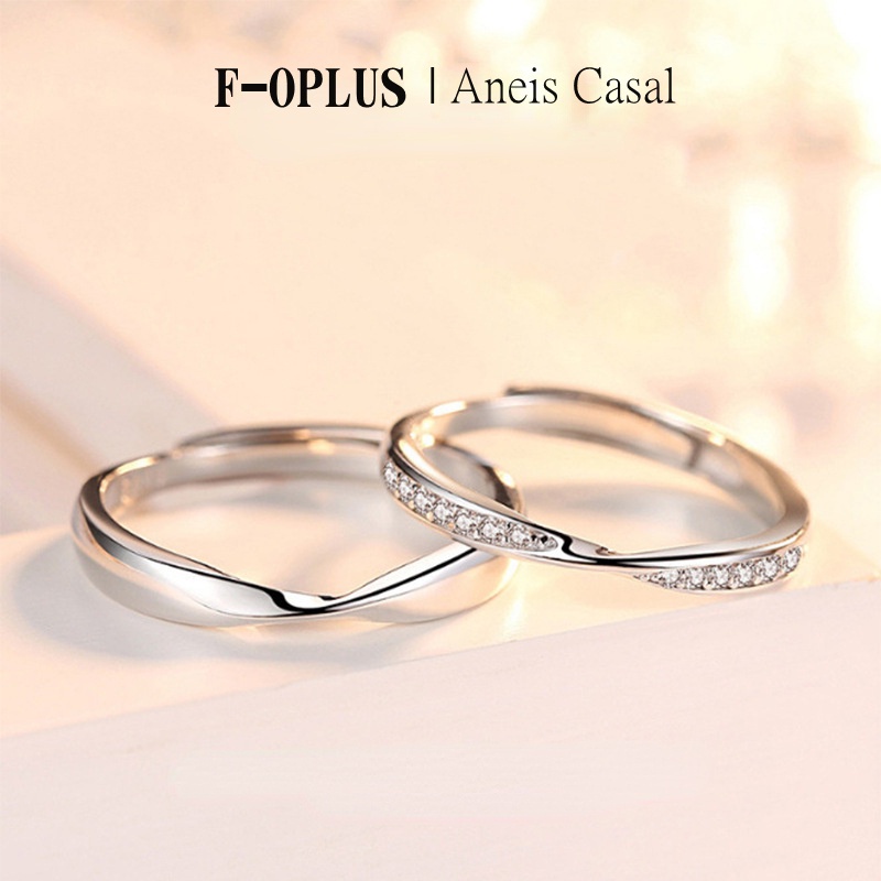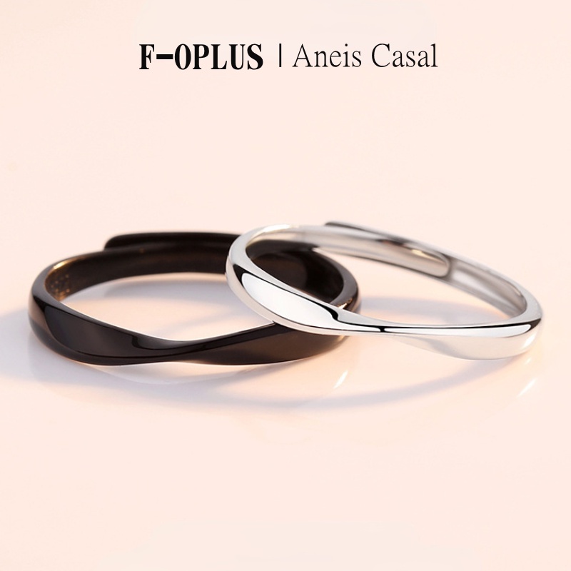 F-OPLUS | Aliança de Namoro Fina Mobius Ajustável Par Aliança Anel de Compromisso Namoro para Masculino e Feminino com Caixa CRC079