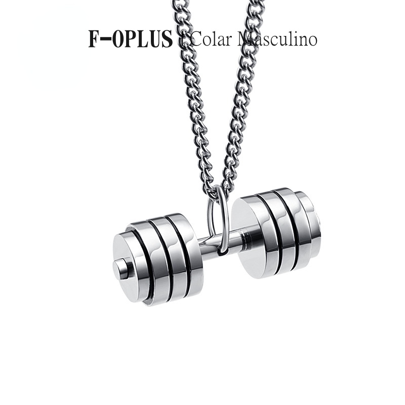 F-OPLUS | Colar Masculino Atleta 3mm 60cm Corrente Masculina com Pingente de Haltere TNM033