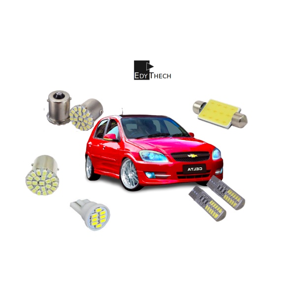Kit Led Interno Externo GM Celta 2001 A 2017 Luz De Ré Placa Teto Farolete