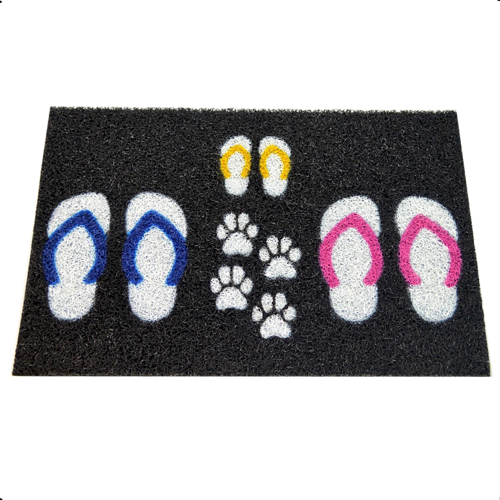 Tapete Capacho Limpe Sim Divertido 60x40 Cm Chinelos e patinhas porta entrada integrantes família dog cão decorativo