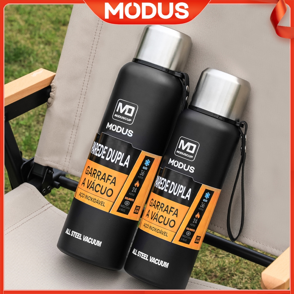 MODUS Garrafa Térmica Água Café Suco Para Academia Passeio Caminhada Camping Aço Inox 1L ou 1,5L Com Bolsa de Transporte Bebida Quente Gelada