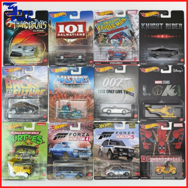 Hot Wheels Premium Retro Entretenimento 2023 DMC55 (Pacote Para O Futuro Ford Super De Luxe , Mario Bros . Caixote De Filme , 007 You Apenas Twice Toyota 2000GT Roadster , Rugrats Reptar Wagon) 1 : 64 Diecast Scale Modelo Carro