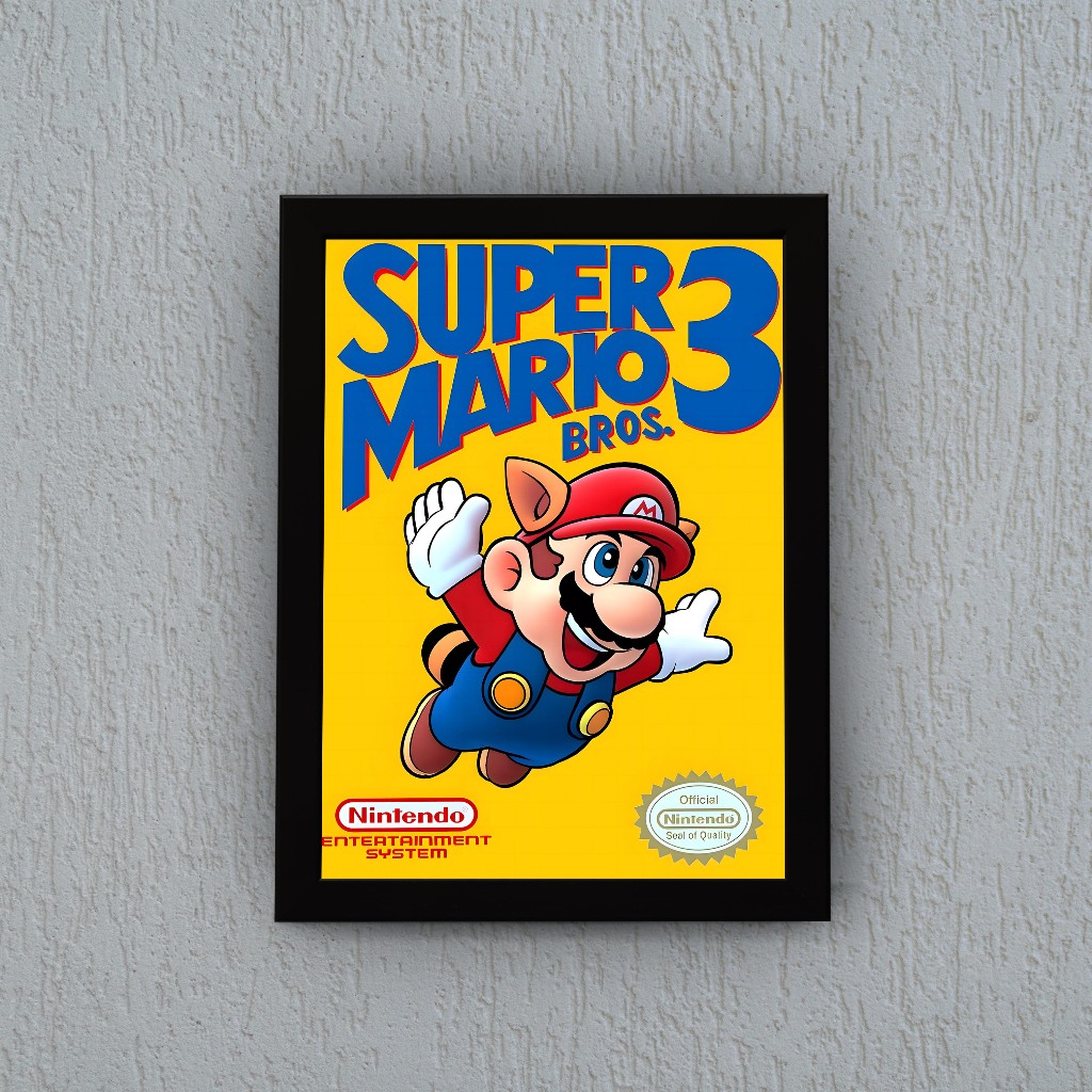 Quadro com Moldura Decorativa e Vidro - Super Mario Bros. 3 // Game