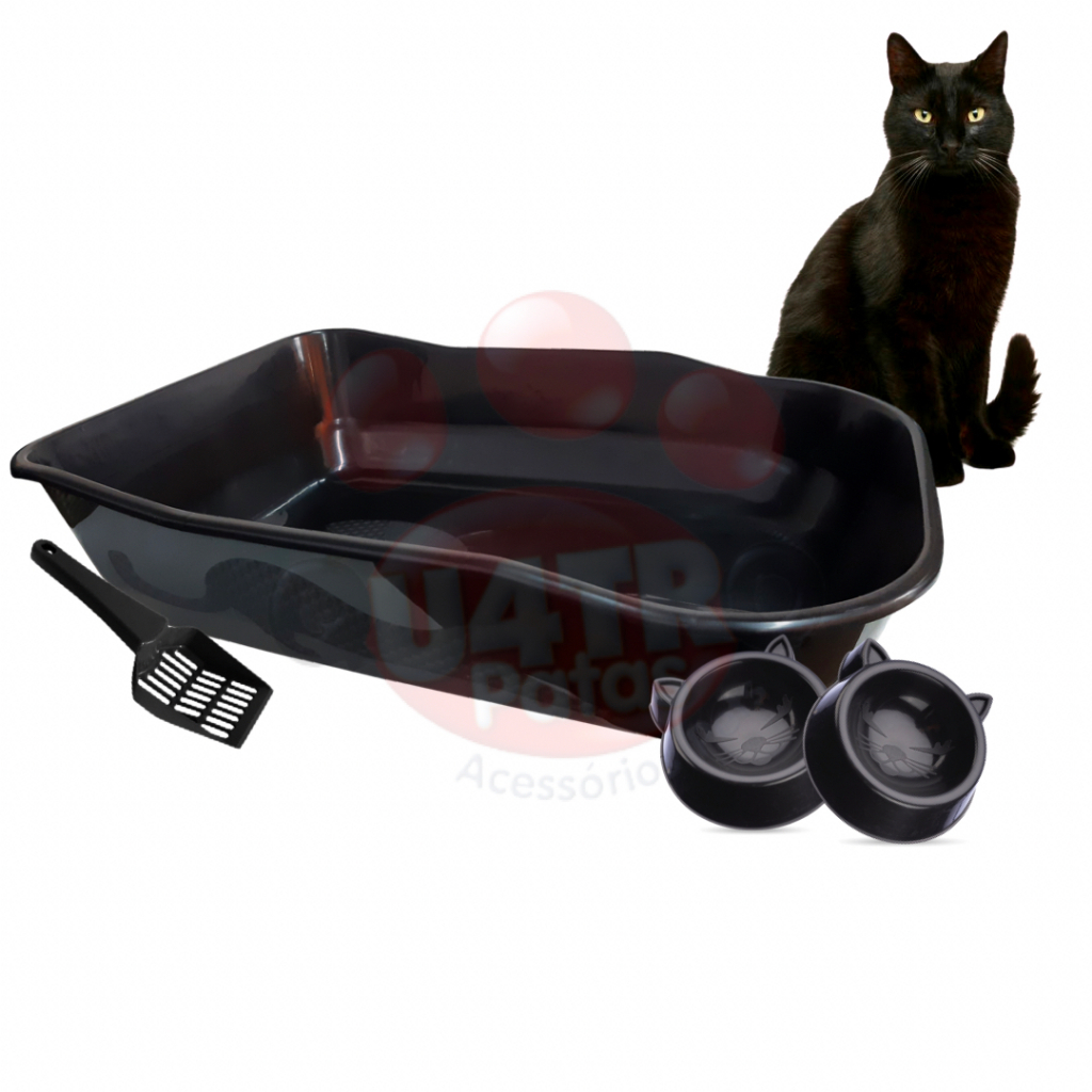 Kit Caixa de areia para gatos pet grandes banheiro sanitario higienico furba bandeja Durapets