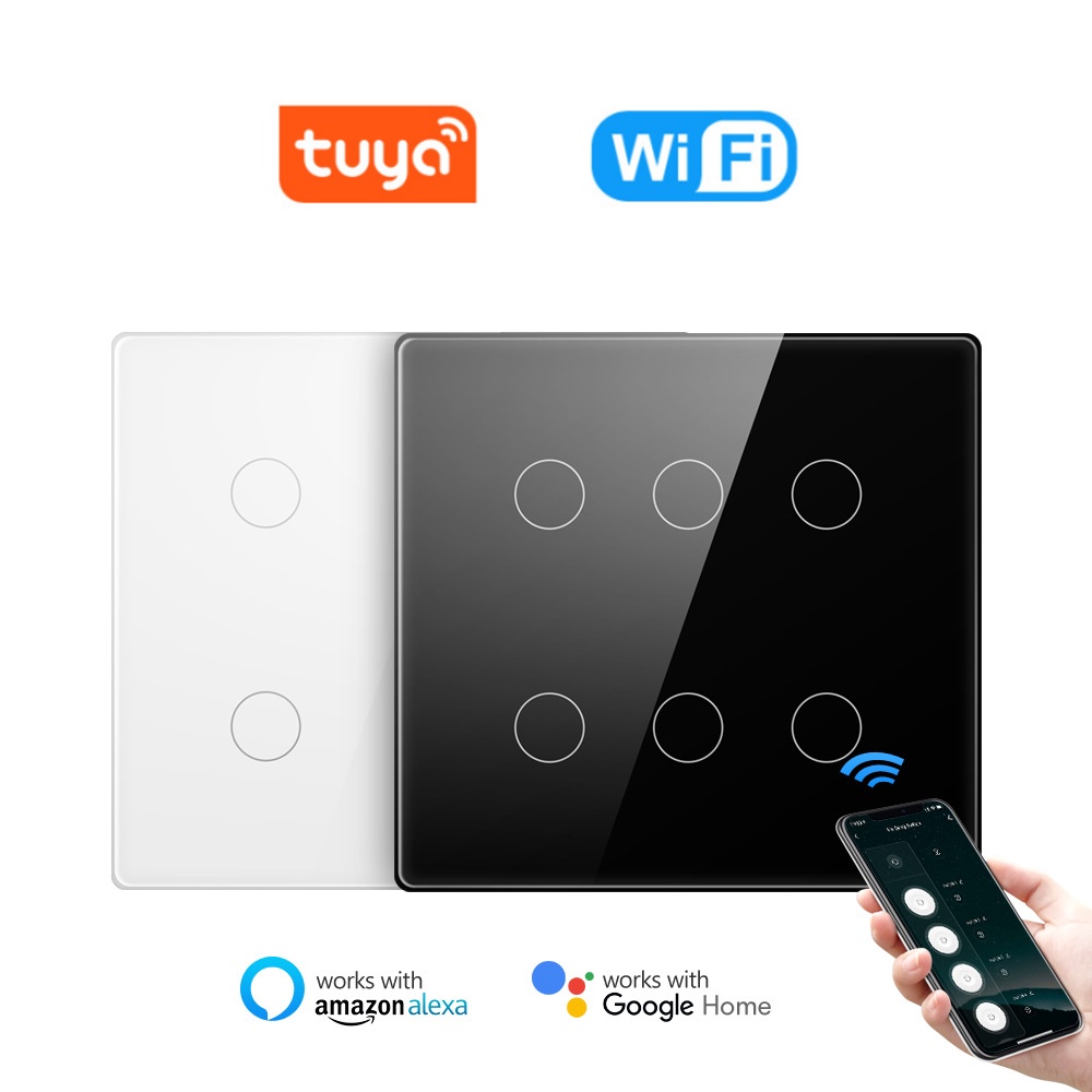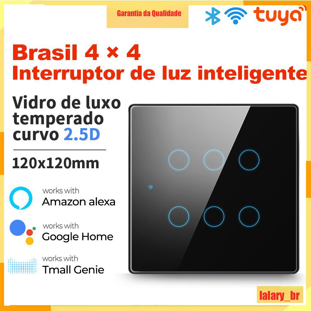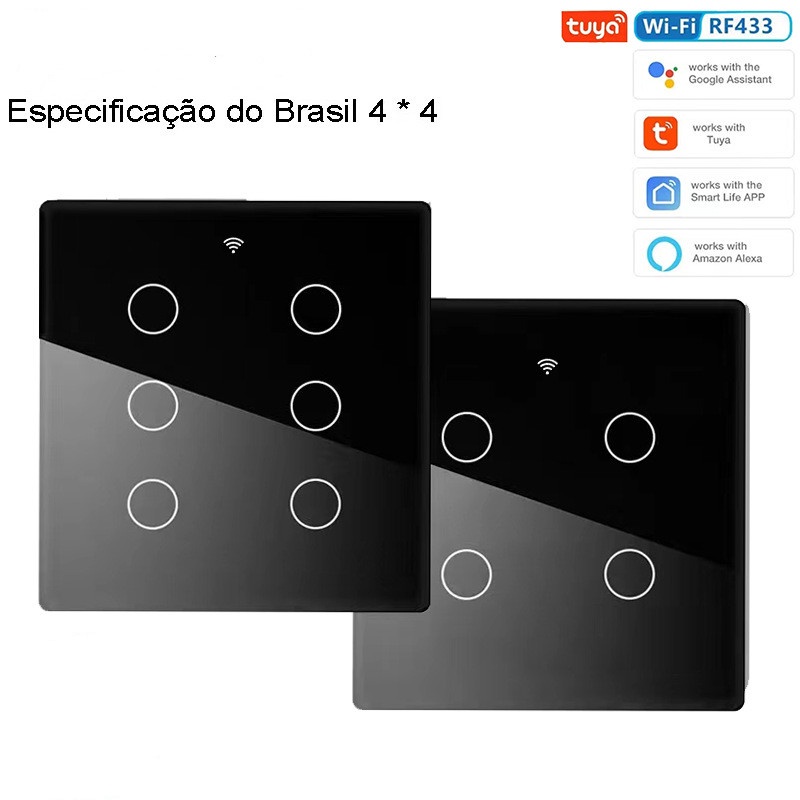 Interruptor inteligente Tuya Wifi, Ac 110-220v Brasil 4x4 painel de toque 4/6 Gang Light App Control trabalho com Alexa , Google Home allove