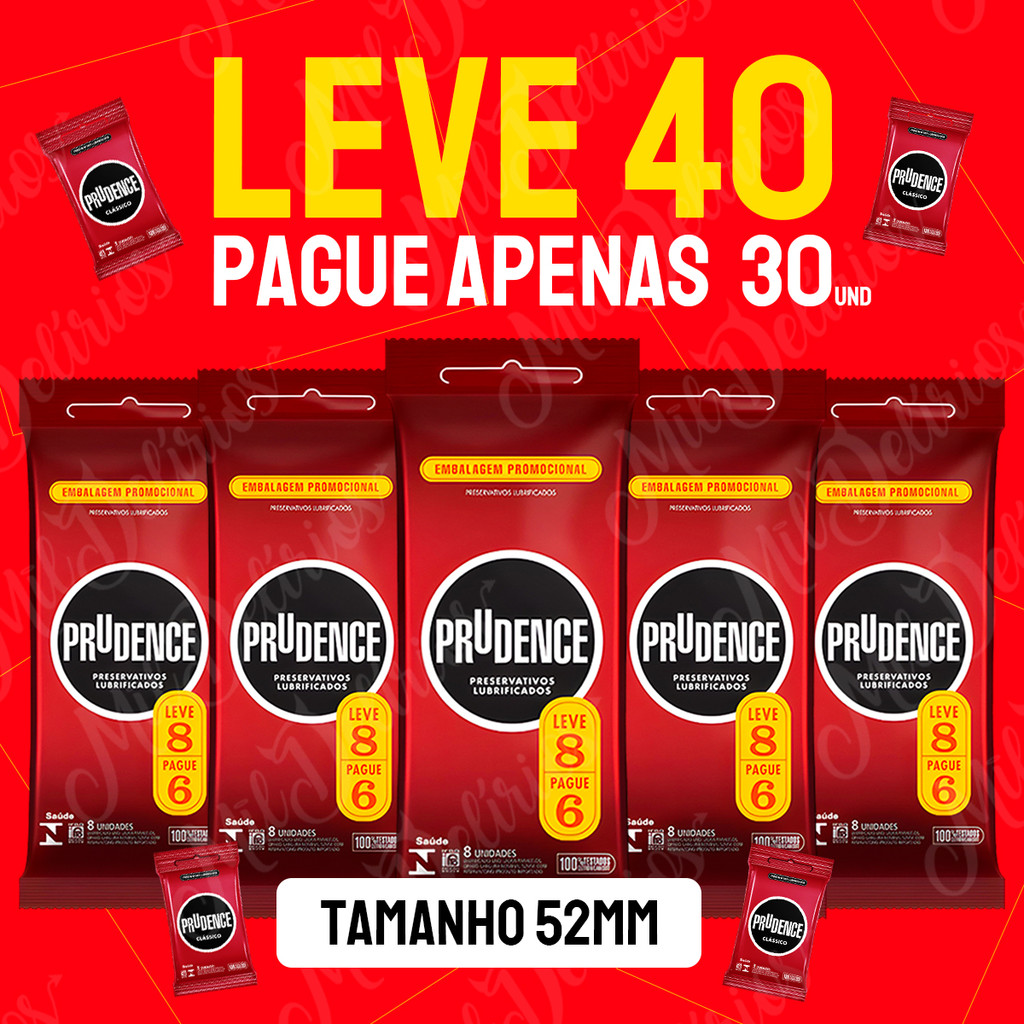 Kit Leve 40 Pague 30 Preservativo Camisinha Tradicional Lubrificado Prudence c/ 8un cada Embalagem