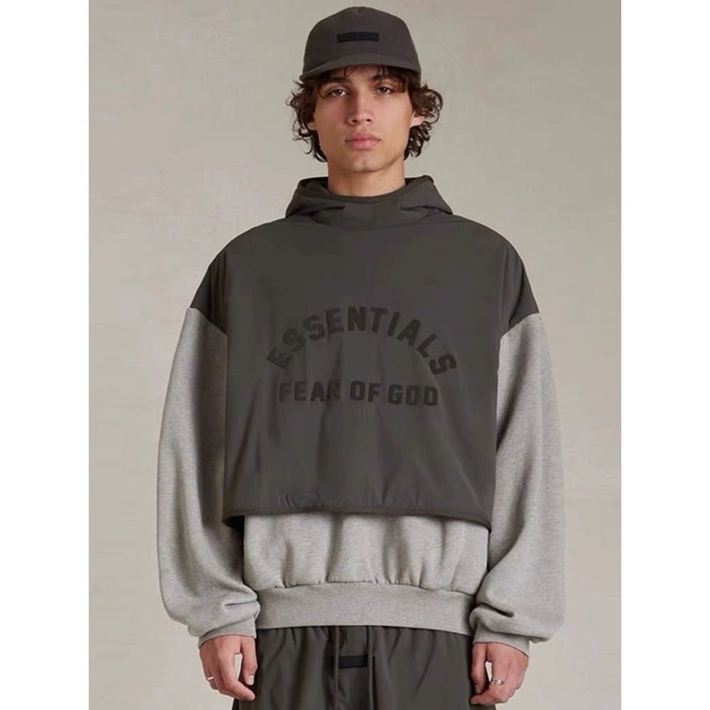 2024SS Inverno Novo FOG FEAR OF GOD Essencials Costura Dupla Fake Two Piece American Fashion Brand High Street Sweater Com Capuz Solto