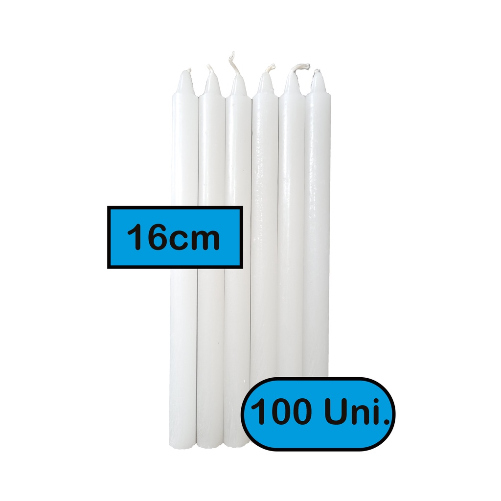 100 Velas Palito Brancas 16 cm x 1,2 cm Parafina Pura Promoção Preço de Atacado