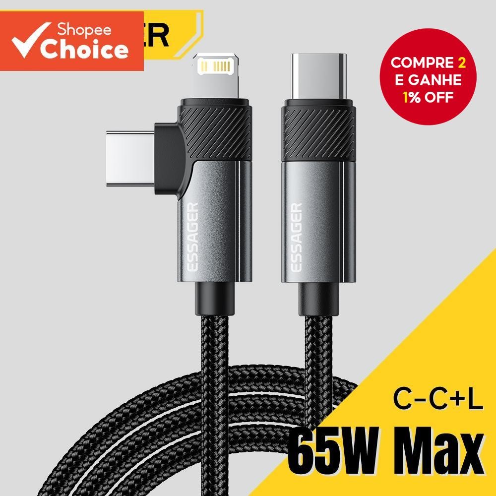 Essa Essager 2 Em 1 Cabo USB Tipo C 65W PD Fio De Carregamento Rápido Para 15 14 Pro Max Xiaomi