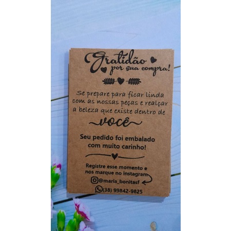 Kit Empreendedorismo Combo empreendedor Mimo 100 unidades Cartão agradecimento ao cliente e 100 unidades Tag Sem furo mini cartão modelo 74