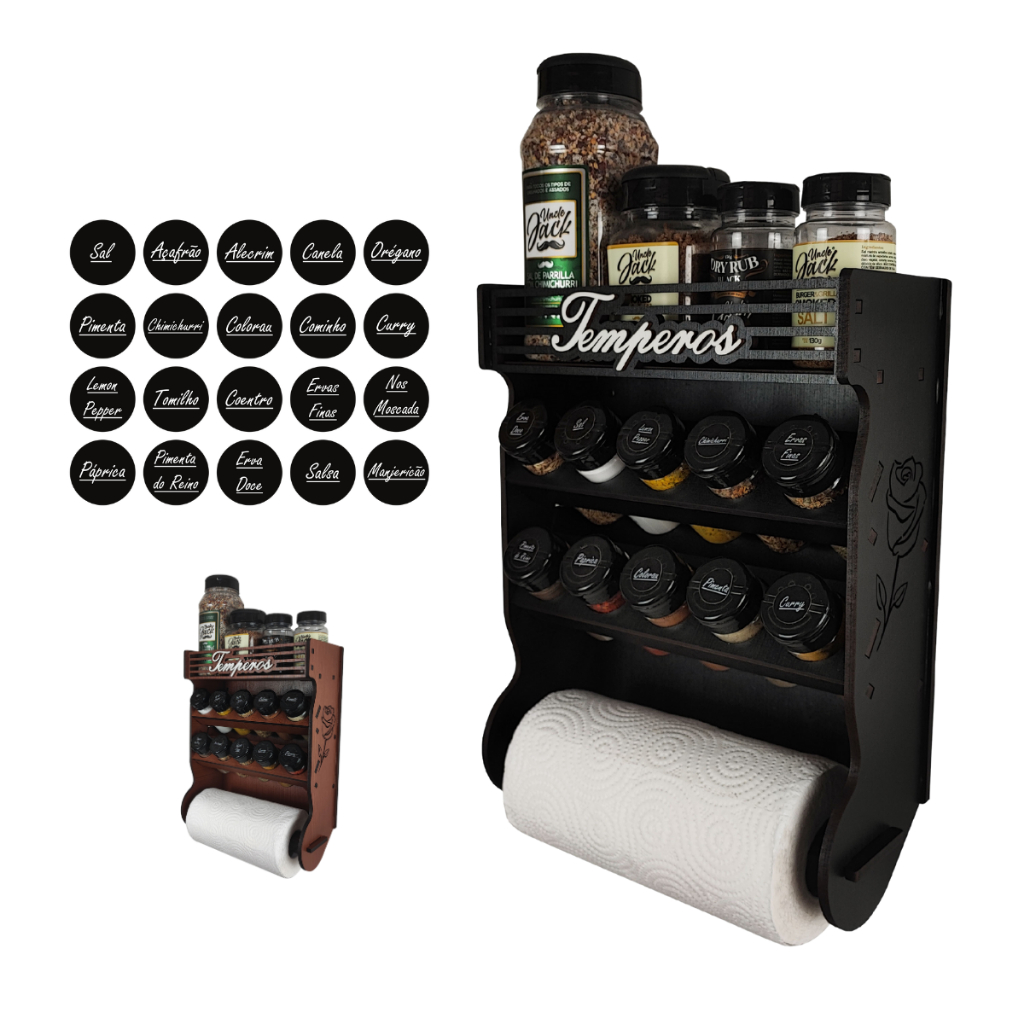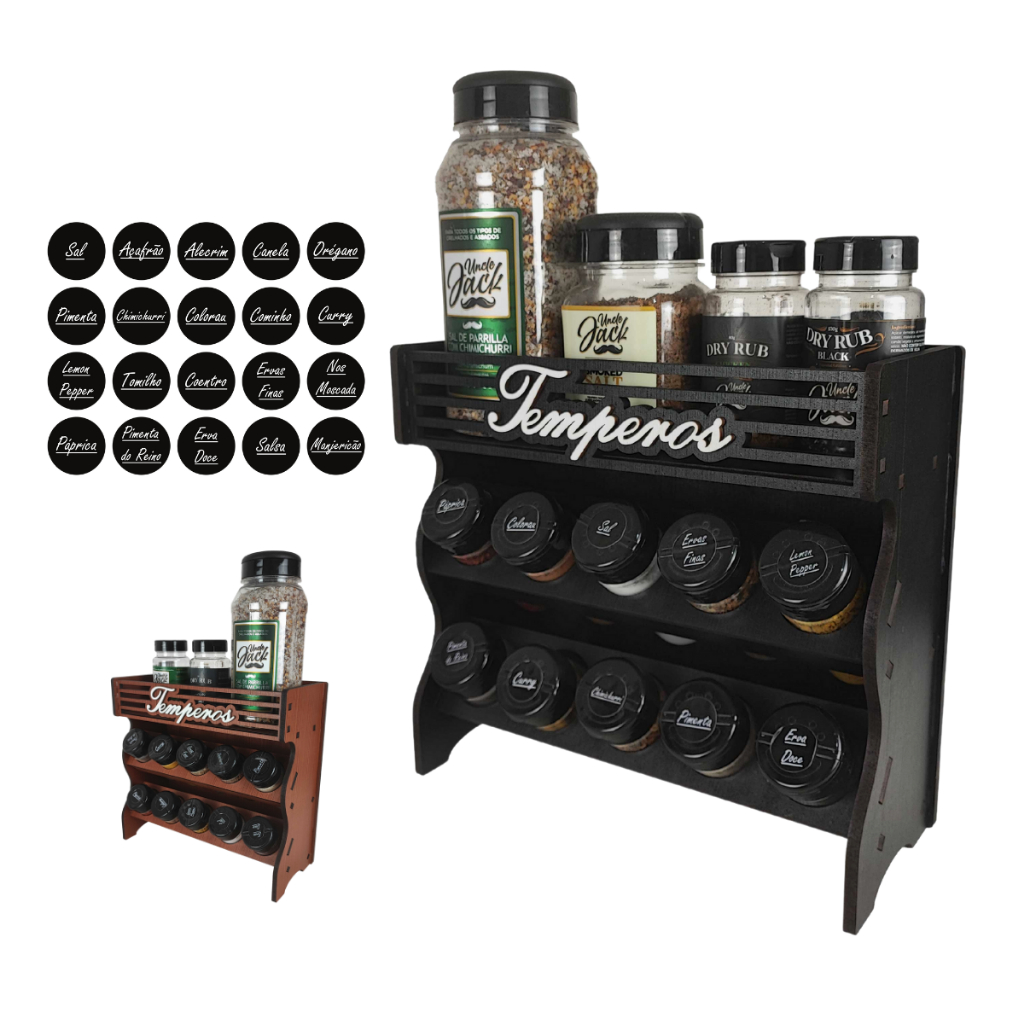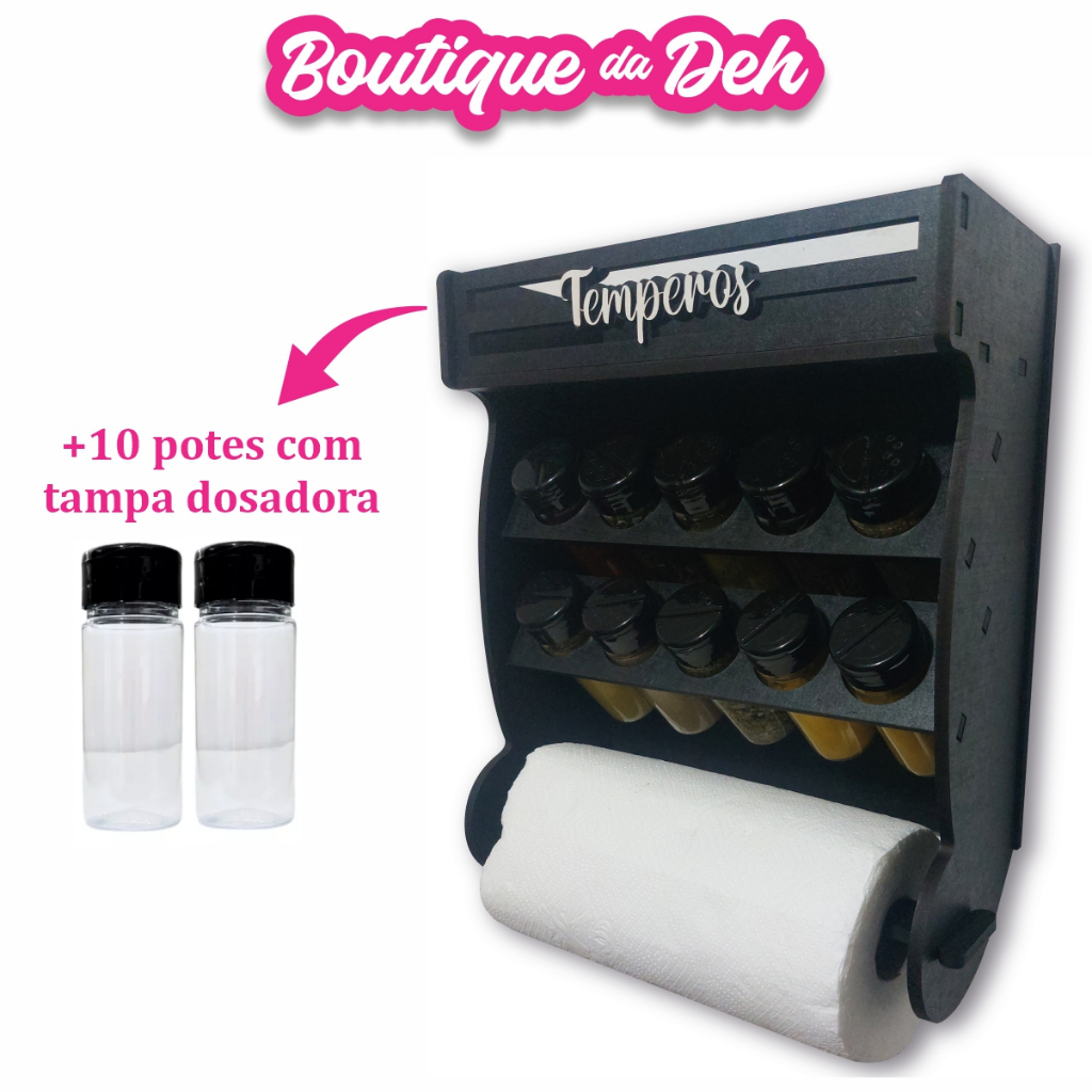 Porta Temperos com Local Para Colocar Potes + Kit 10 Potes de Tempero.