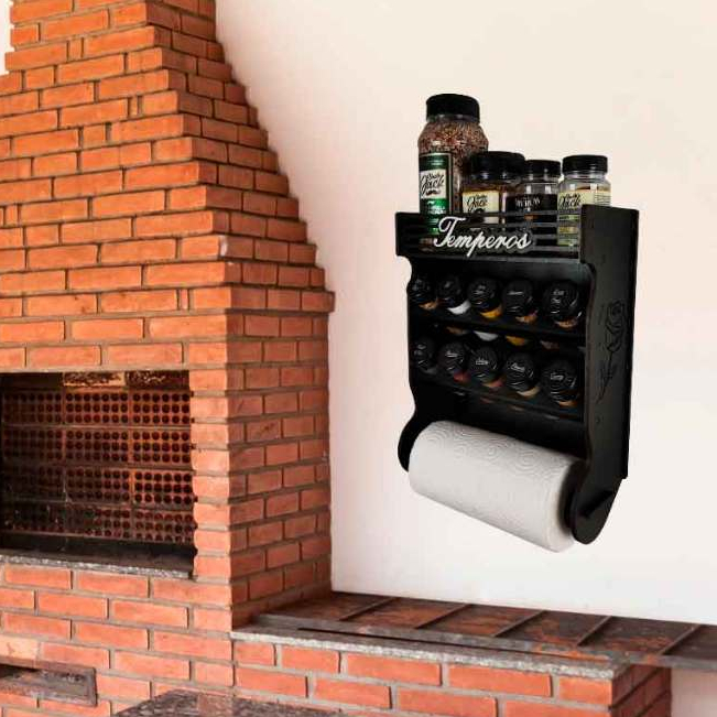 Porta Tempero de Parede com Potes e Local Para Colocar Potes de Sal e Cartela de Etiquetas