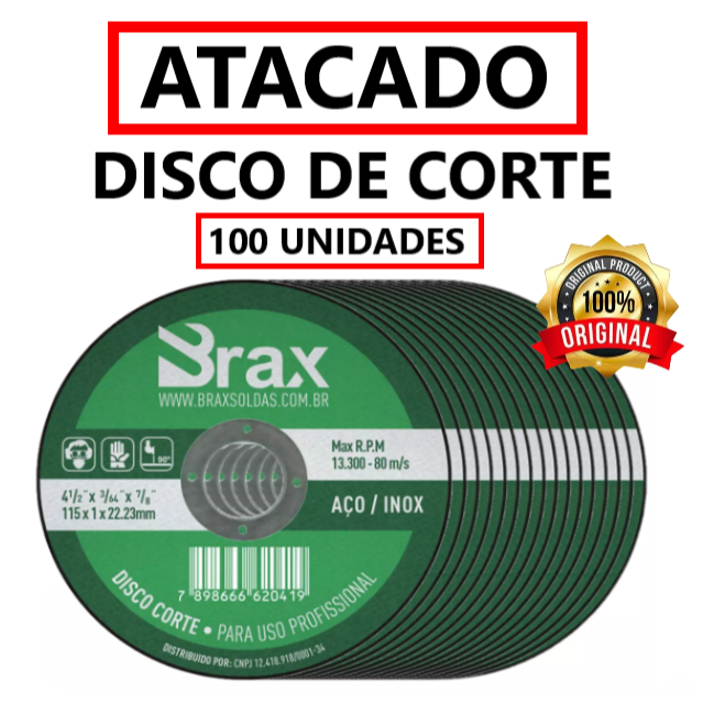 Kit 100 Disco de Corte Fino Aço Inox Metal e Ferro 115 x 1,0 x 22,23 Esmerilhadeira