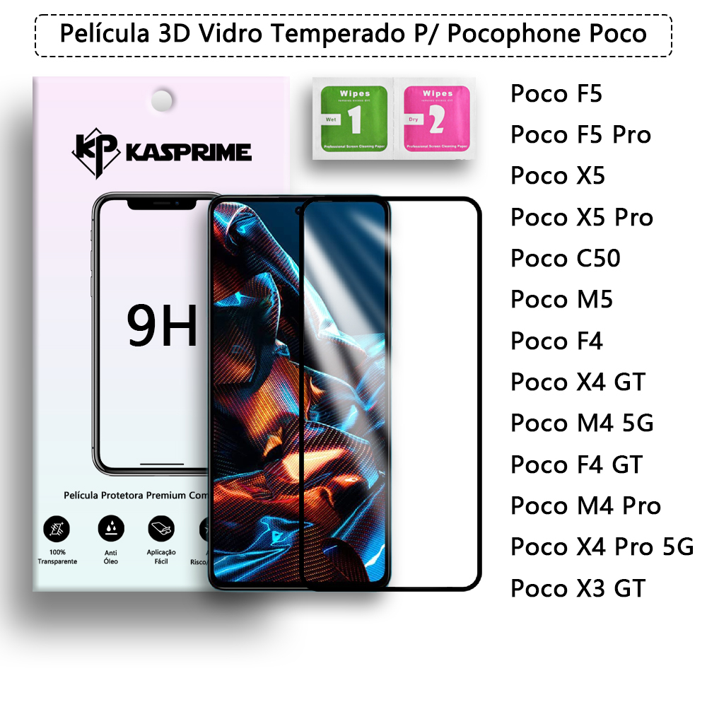 Película Protetora 3D De Vidro Temperado 9H P/ Pocophone Poco F5 F5 Pro X5 X5 Pro C50 M5 F4 X4 GT M4 5G F4 GT M