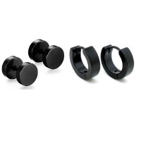 Kit 2 pares de brincos Falso alargador e Argola Masculino Feminino Unissex aço inox