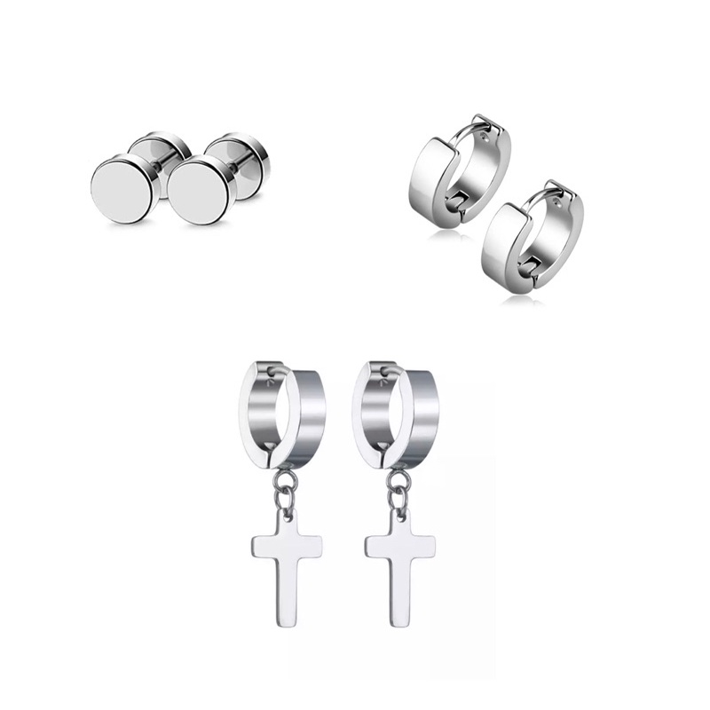 kit 3 pares brincos de aço inox Unissex pingente cruz brincos argola - Feminino Masculino unissex