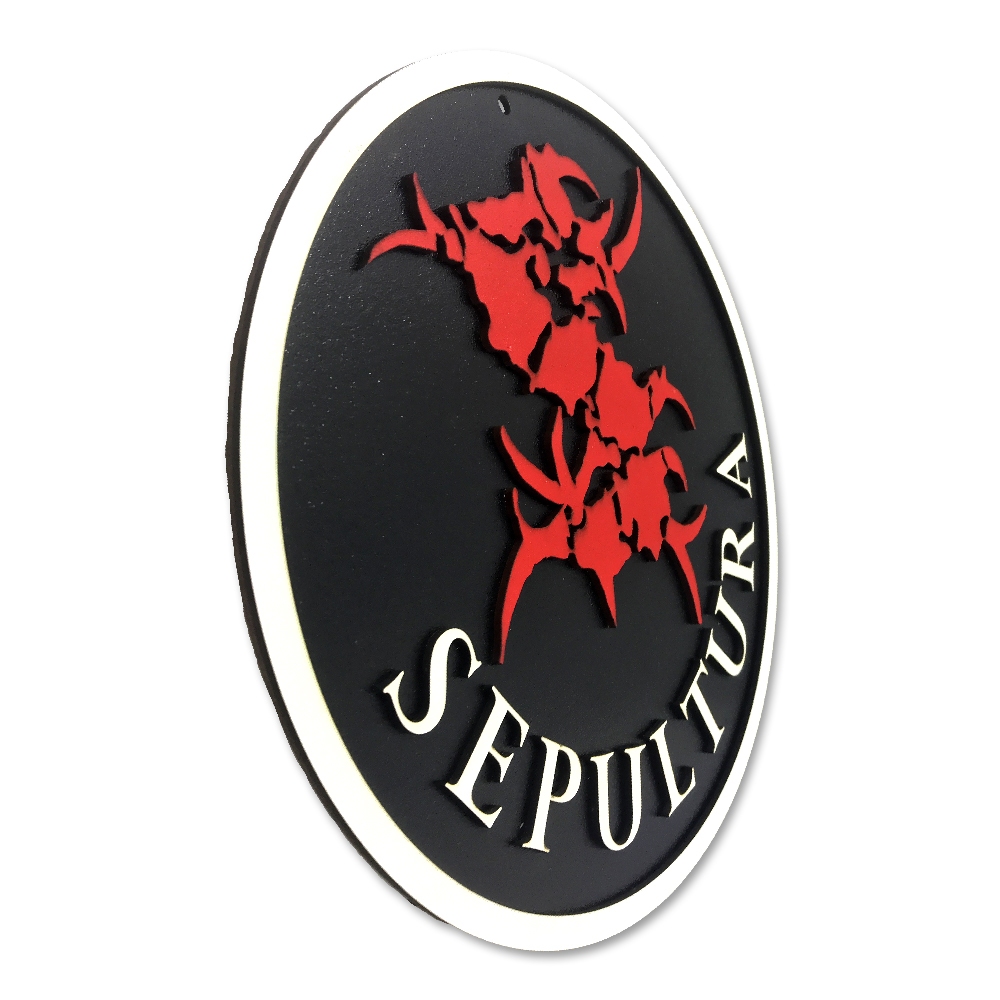 Placa Decorativa Banda Sepultura Logo 3D Alto Relevo MDF Cantinho do Churrasco Decoração Restaurante Bar Garagem