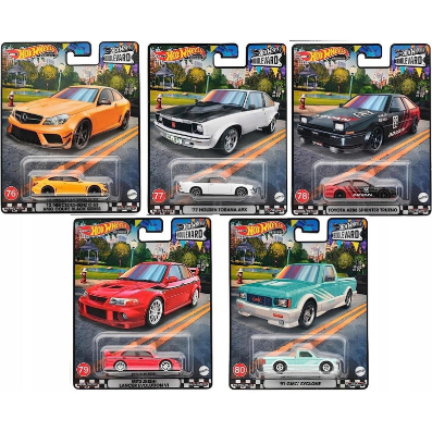 Hot Wheels 2023 Boulevard Premium ('77 Holden Torana A9X HKF12 , 12 Mercedes-Benz C63 AMG Coupe Black Series HKF23 , 91 GMC Cyclone HKF24 , Mitsubishi Lancer Evolução VI HKF26 , Toyota AE86 Sprinter Trueno HKF28) 1 : 64 Diecast Carro Modelo De Escala