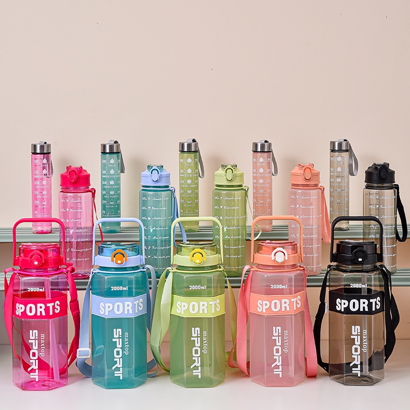 Kit 3 Garrafa De Água Squeeze Academia Com 2000ml 900ml E 300ml Portátil Adesivos