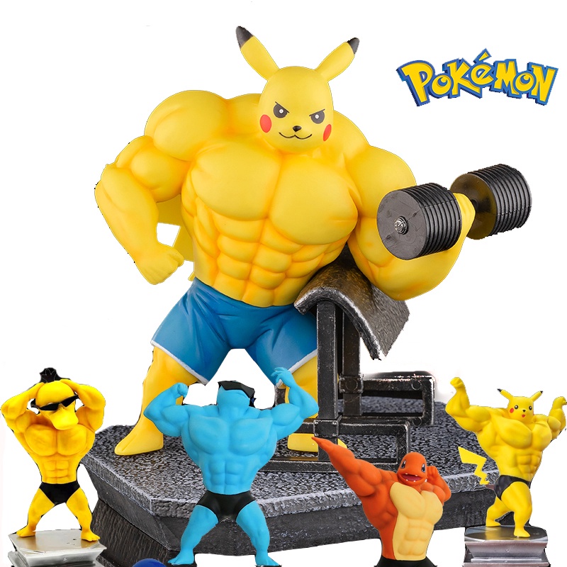 Action Figure Pokemon Muscle Pikachu Gengar Weightlifting Charmander Kit Modelo Garagem Boneca Brinquedos Para Crianças s