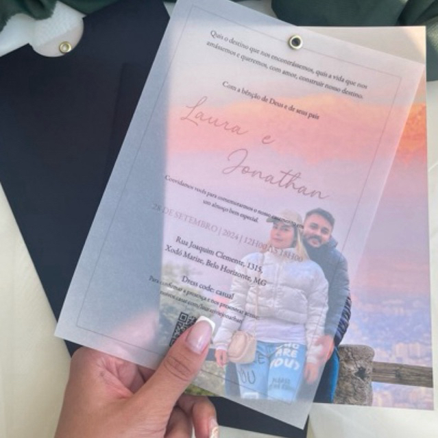 Convites fotográficos para casamento com papel vegetal e ilhós