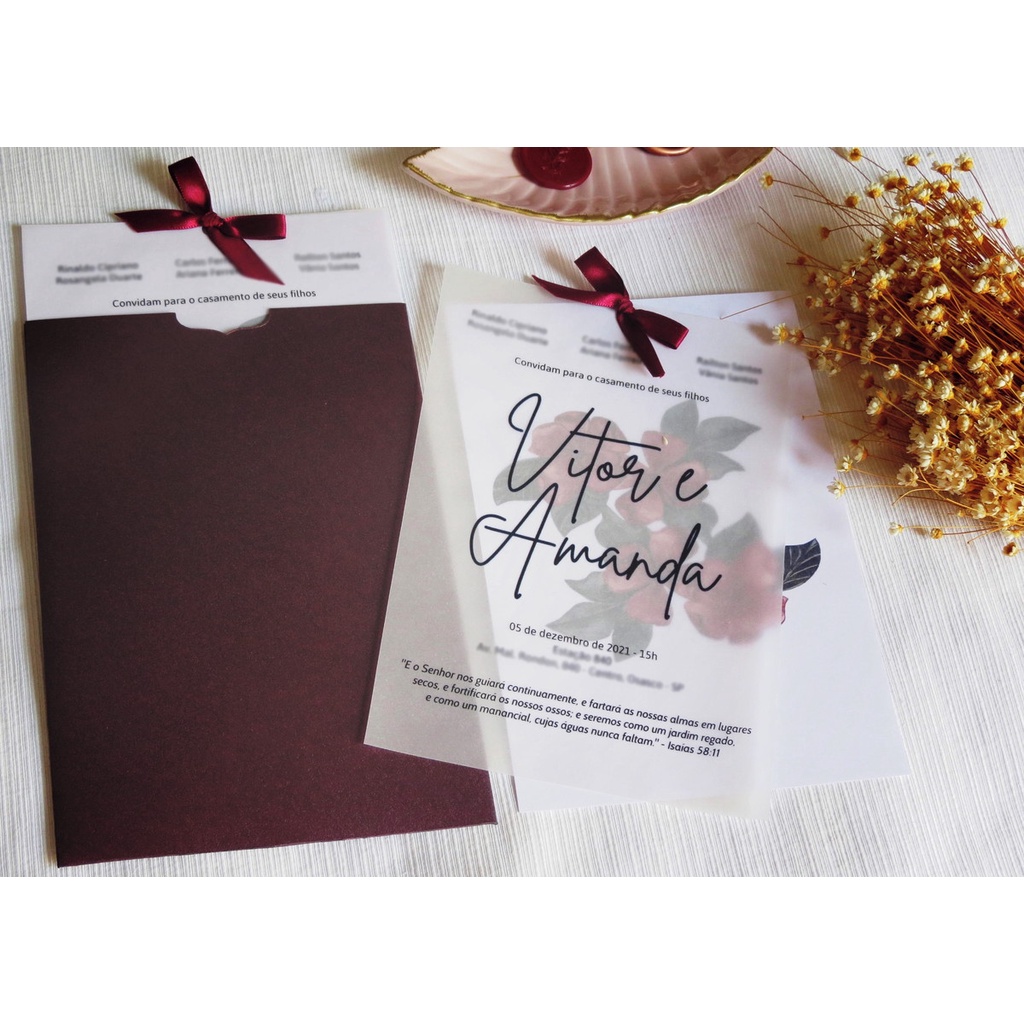 PROMOÇÃO!! 100 Convites Casamento Papel Vegetal Com Envelope Marsala