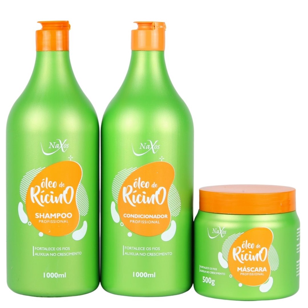 Kit de Tratamento Capilar Oleo de Ricino Shampoo, Condicionador e Máscara 1 Litro Naxos