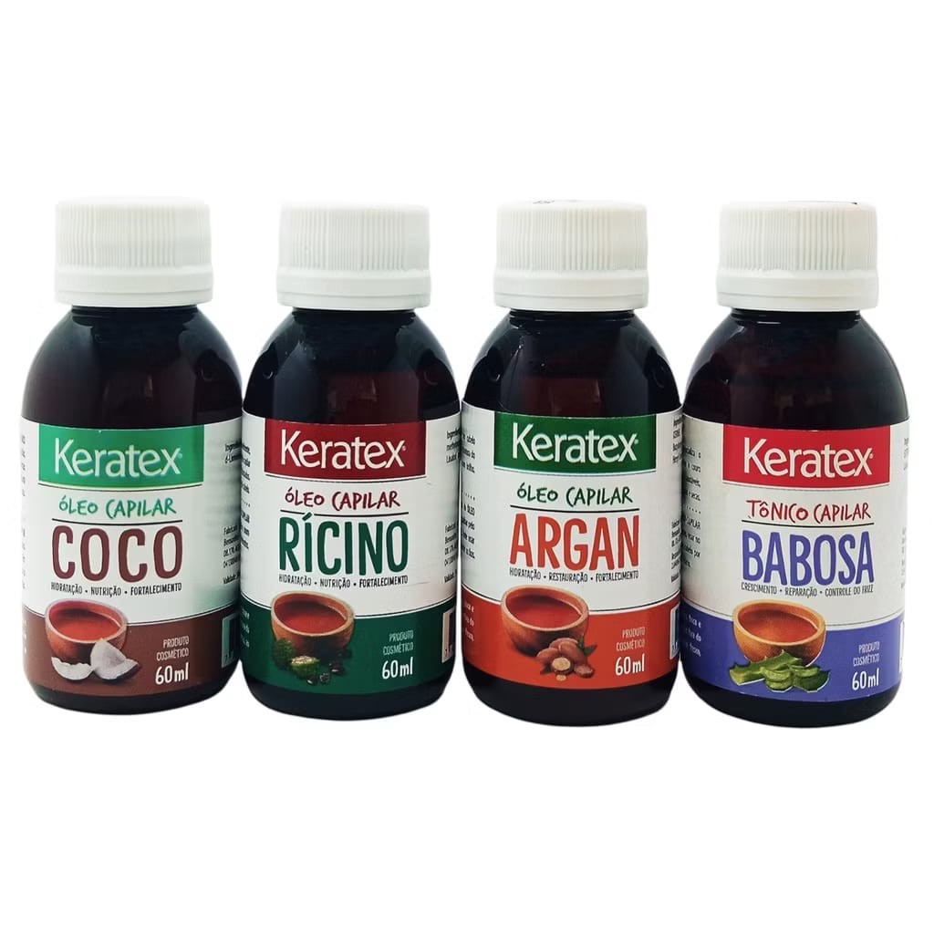 Kit Keratex Tratamento Capilar Óleo de Coco, Óleo de Rícino, Óleo de Argan e Tônico de Babosa 60ml