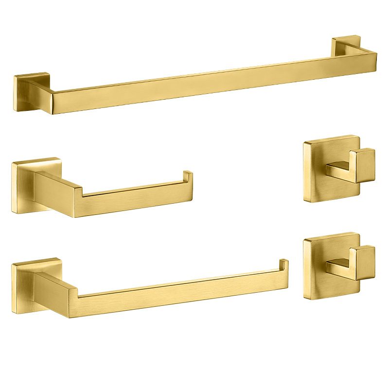 Kit Jogo De Conjunto Acessorios Para Banheiro Quadrado 4 Peças Aço Inox 304 Luxo Dourado Gold