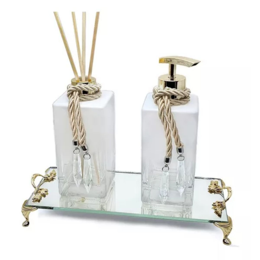 Kit Lavabo Luxo Branco Degrade - Porta Sabonete Líquido + Difusor + Porta Escovas