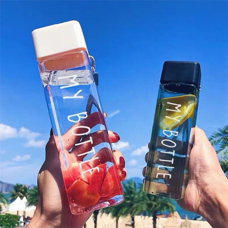 Garrafa de agua quadrada com tampa rosca e ALÇA colors squeezze de plastico para academia trabalho caminhada esporte 450ml Hot Sale