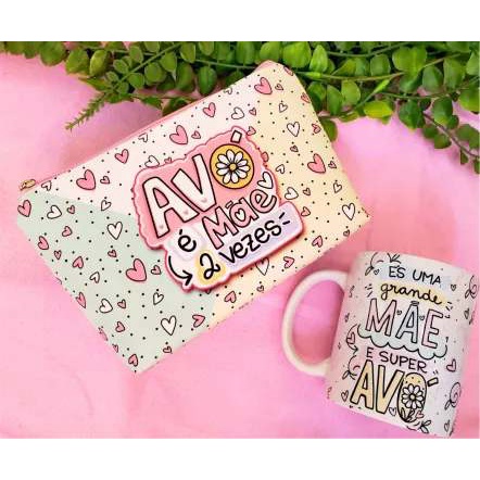 Caneca almofada e nécessaire personalizada Dia Dos Avós - avó - avô - bisa - bisavó para presente