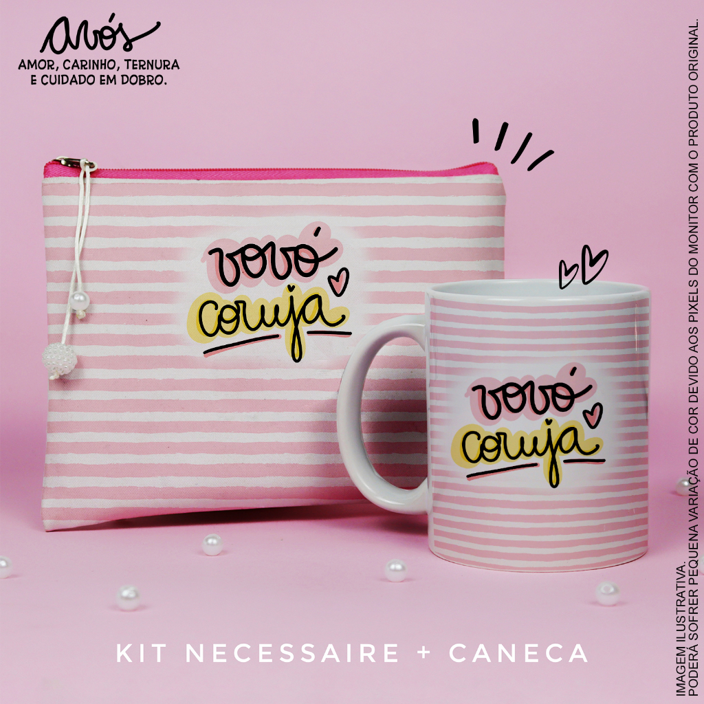 Kit Personalizado Necessaire e Caneca | Dia dos Avós - Presente Avó - Vovó - Coruja