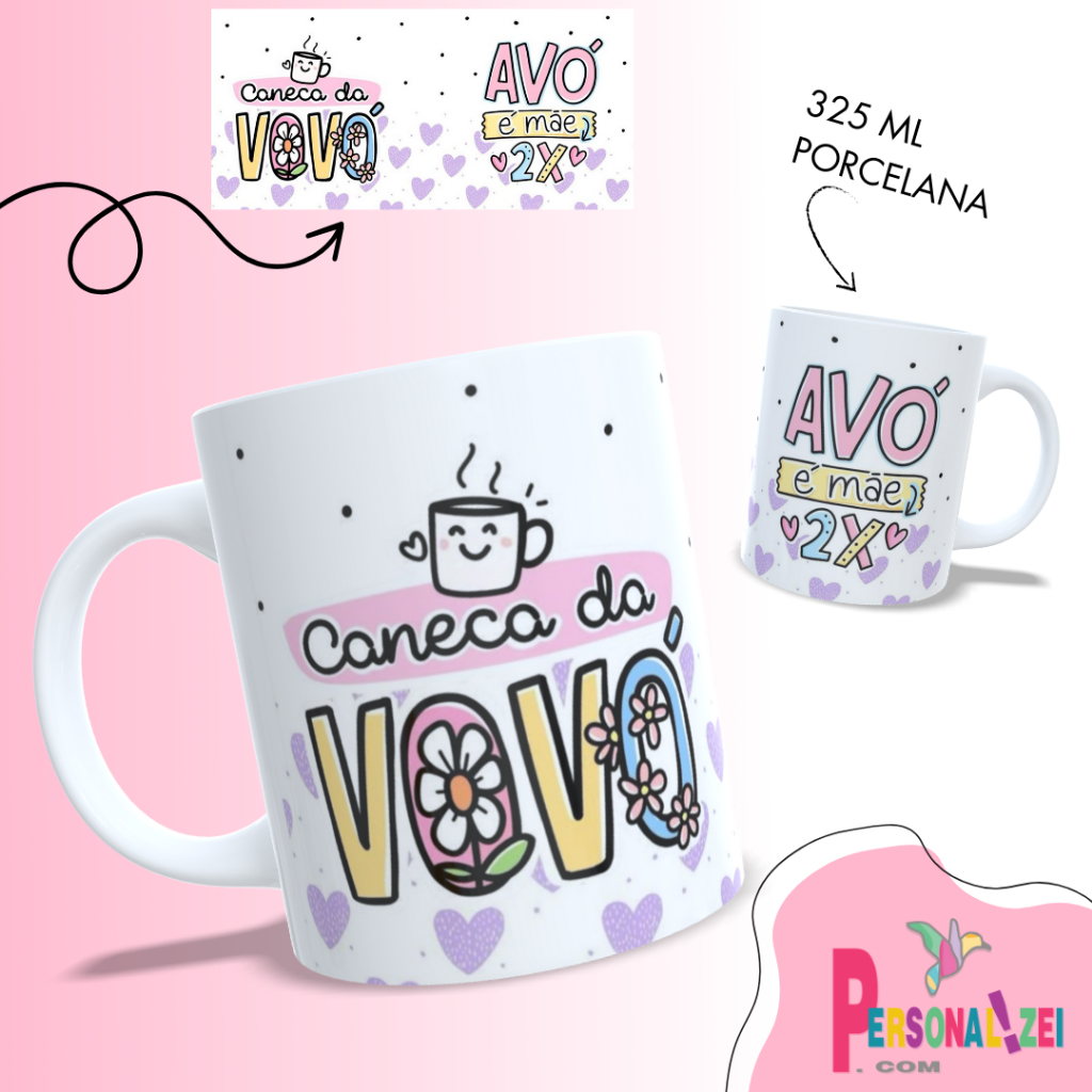 Caneca da Vovó Personalizada Porcelana Xícara Personalizada Avó é Mãe 2 vezes Presente