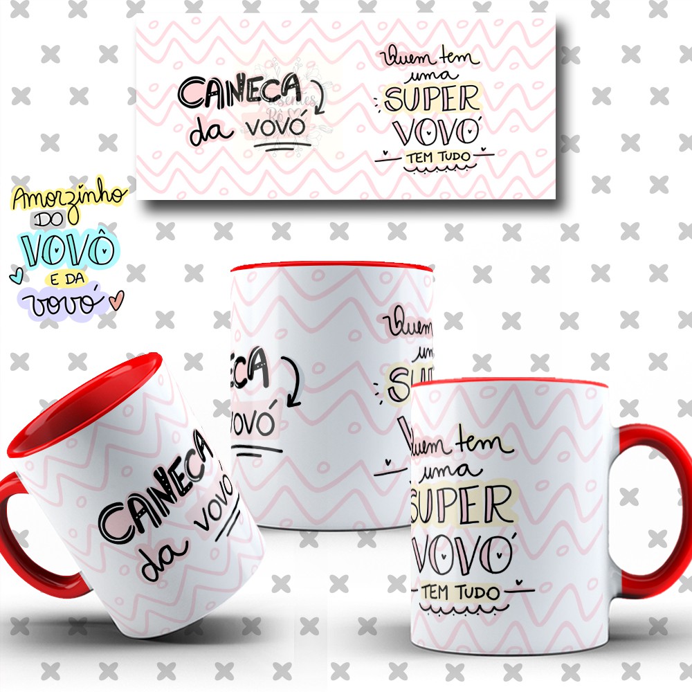 Caneca Vovô Vovó Avós Personalizada para Avô e Avó de Porcelana Vários Modelos para Presente Vô e Vó